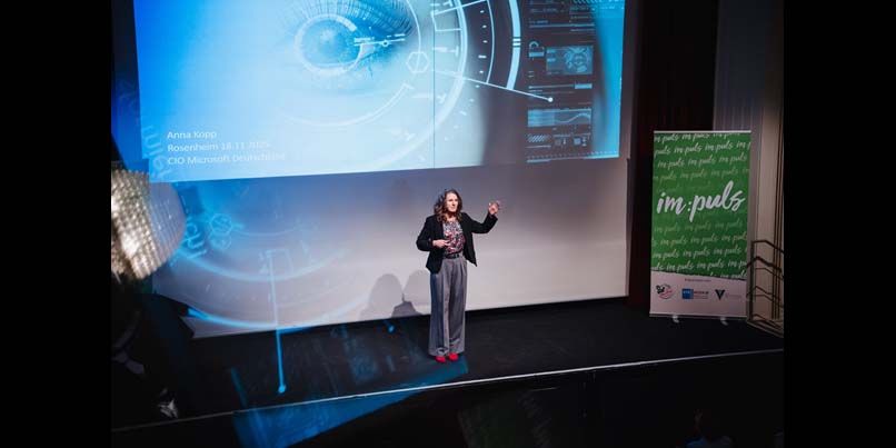 Den Höhepunkt des Abends stellte die Keynote von Anna Kopp, CIO von Microsoft Deutschland, dar, die als Expertin mit Praxisnähe begeisternd aufzeigte, wie KI mehr als nur ein technisches Werkzeug sein kann: „KI verändert, wie wir arbeiten, entscheiden und führen – die Einbindung gelingt jedoch nur, wenn wir mit Mut zur Veränderung und Offenheit für Neues zielgerichtete Lösungsansätze entwickeln.“